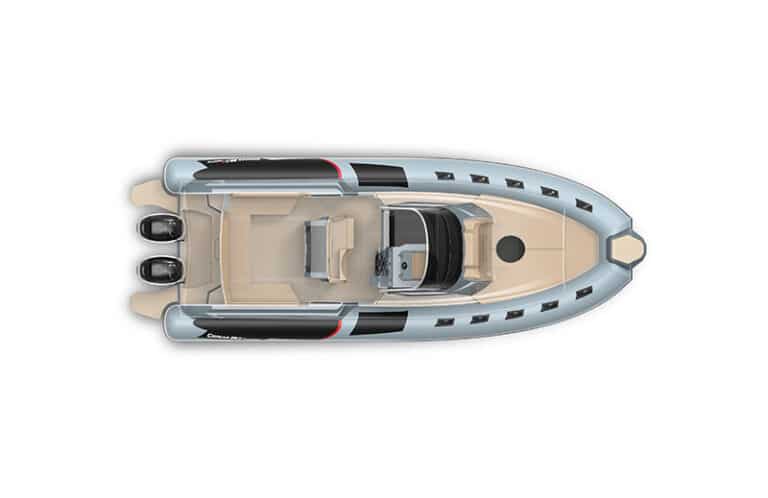 Featuring a length of little more than 8.60 meters and a width of 3.30 meters, this RIB of modern design makes the generous volumes its greatest weapons and, despite its remarkable dimensions, is easily transportable when the tubes are deflated.