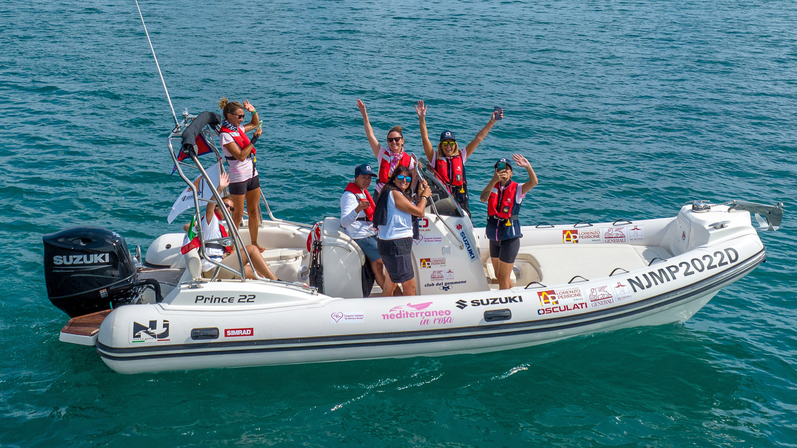 Die zweite Ausgabe des Mediterraneo in Rosa wird am 5. September mit einer Prince 24 Exclusive, angetrieben von einer Suzuki DF 300, starten. Dieses leistungsstarke RIB wird von Catania aus wieder in Richtung der Internationalen Bootsausstellung in Genua aufbrechen. Angeführt wird die abenteuerliche Reise von Daniela Covati, Navigatorin und Vertreterin der Familie Aiello (Nuova Jolly Marine), und Carla Gnemmi, Navigatorin des Club del Gommone di Milano seit 2008. Mit an Bord sind einige wichtige Gäste: Während der verschiedenen Etappen werden mehrere Frauen, die den Krebs überwunden haben, als „Botschafterinnen der Prävention“ auftreten.