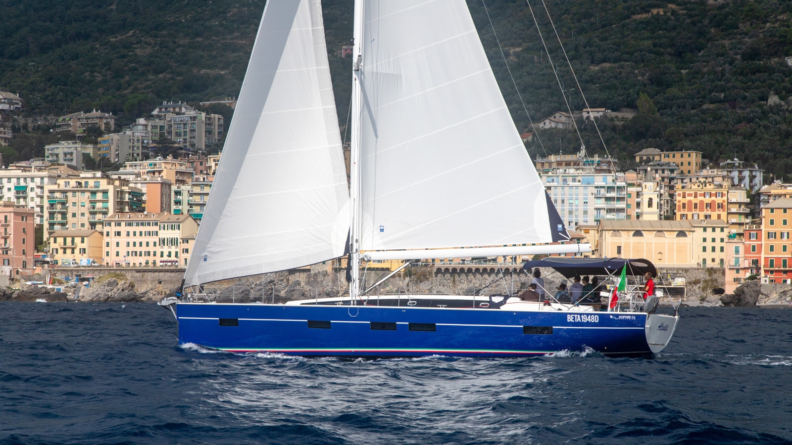 This special version of the Kufner 54 Exclusive features white (instead of the standard black) seams matched with white Carbonautica wheels and a white painted mast, making everything look homogeneous and at the same time contrasting with the deep blue keel.
