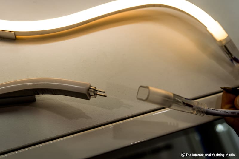Neon Light is a flexible LED strip which, available in a white-and-blue tone, delivers uniform light, useful for illuminating the exterior and interior of the boat. The innovation, however, lies in the “dimensions”, which allow to always occupy the right space without processing waste, making the strip adaptable to any use.