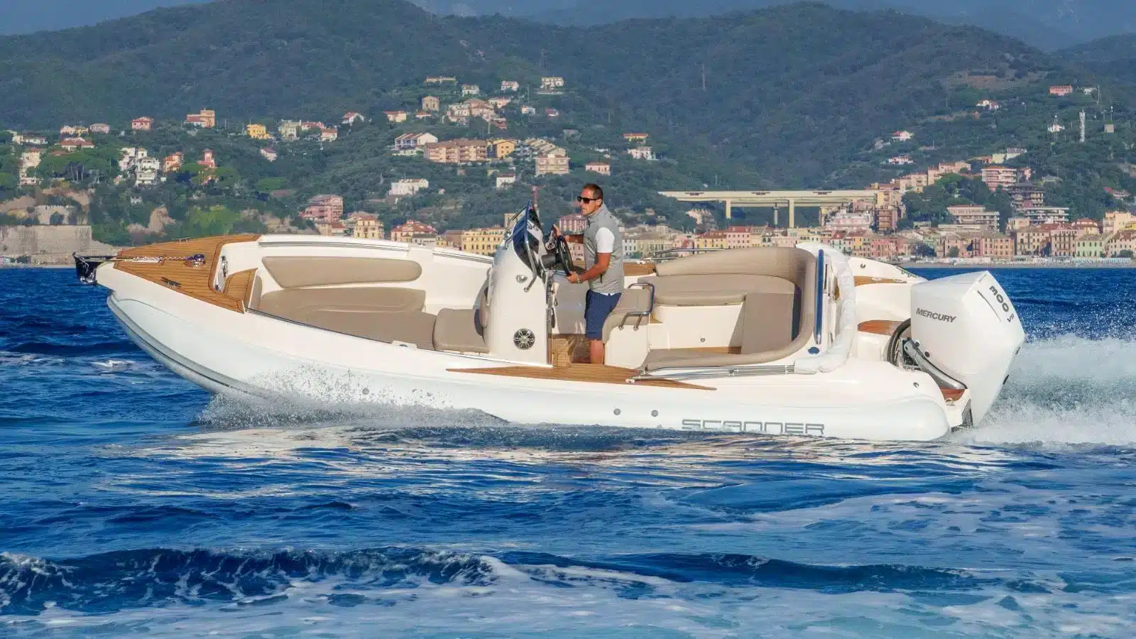 • Scanner Envy 1100, a RIB with carefully proportioned spaces, which make you feel aboard a significantly larger boat, where the central area features wide walkways with ample use of teak framing the entire length of the deck, allowing easy passage from the stern to the bow.